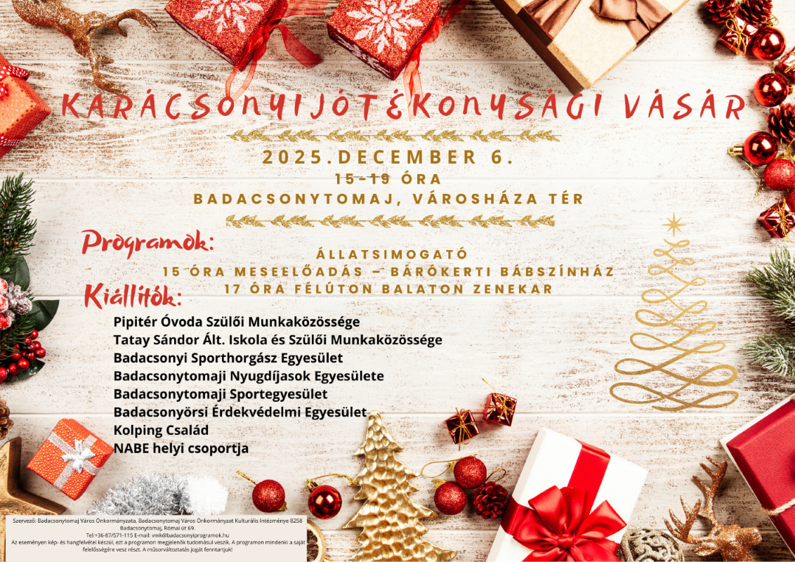 JÓTÉKONYSÁGI VÁSÁR admin.vmk november 19, 2025 29 No Comments menü Related posts Vélemény, hozzászólás? Válasz megszakításaAz e-mail címet nem tesszük közzé. A kötelező mezőket * karakterrel jelöltükHozzászólás * Név * E-mail cím * Honlap